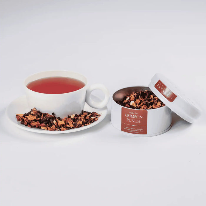 Elevate your tea experience to a new dimension with Crimson Punch—a tantalizing blend of apple, hibiscus, orange peel, rosehip, and sunflower blossoms. This symphony of flavors dances on your palate, orchestrated to perfection.